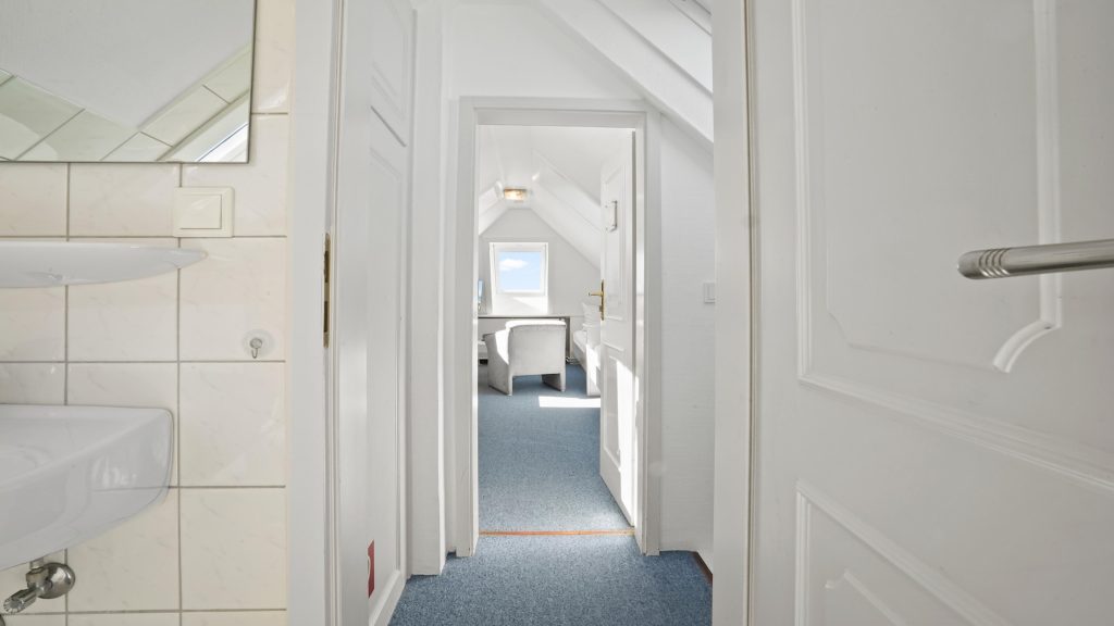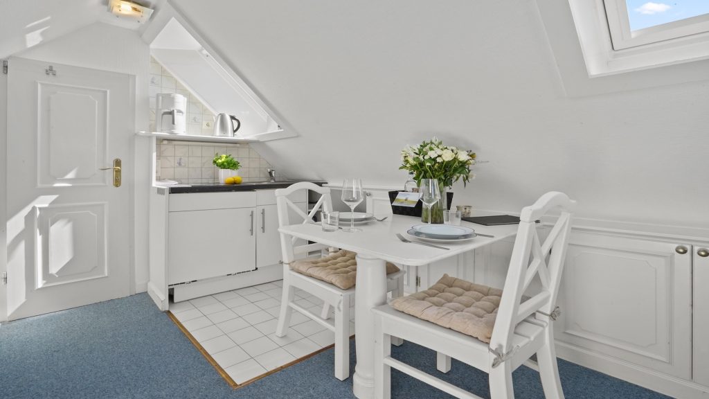 Die kleine aber feine Suite wurde für Sie mit viel Liebe zum Detail gestaltet und verfügt über Tischlereinbauten, die ästhetisch ansprechend sind und auch praktischen Stauraum bieten. Ein abschließbarer Schrank befindet sich im kleinen Vorflur. Die hellen Farben und das moderne Design schaffen eine entspannte und einladende Atmosphäre, die Ihnen das Gefühl von Ruhe und Gelassenheit vermittelt. Damit Ihr Sylt-Urlaub mit Meerblick zu einem echten Highlight wird.