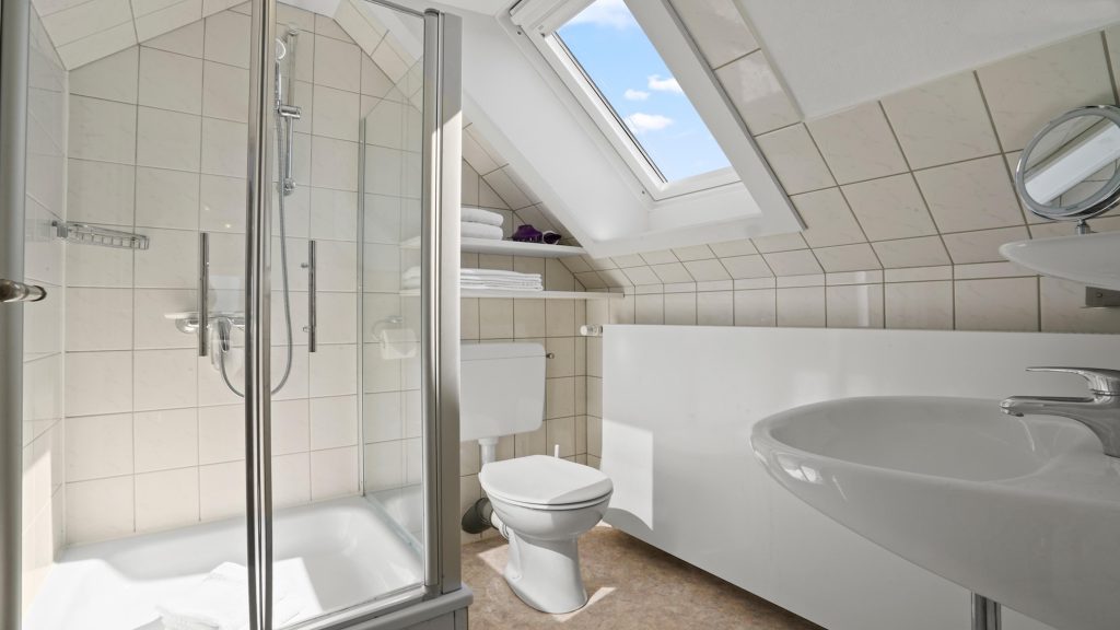 Für Ihre persönliche Privatsphäre verfügt die Suite natürlich auch über ein separates Badezimmer. (Dieses ist über den kleinen Vorflur zu erreichen) Hier können Sie nach einem langen Tag am Strand oder beim Erkunden der Insel eine erfrischende Dusche nehmen. Das Warmwasser und die Heizung werden mit regenerierbarer Energie (Geothermie) erwärmt und so schonen Sie in Ihrem Urlaub gleichzeitig die Umwelt.