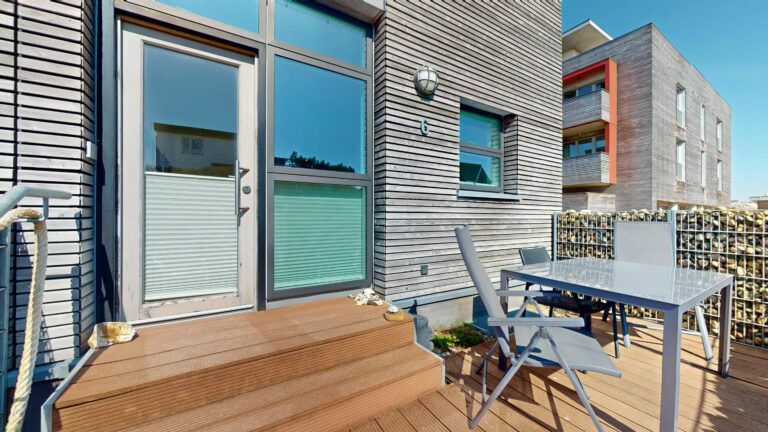 Im Erdgeschoss erwartet Sie eine voll ausgestattete Küche mit großzügigem Essbereich und direktem Zugang zur sonnigen Terrasse – perfekt für gemeinsame Mahlzeiten im Freien. Außerdem befinden sich hier ein separates WC, ein Duschbad sowie ein Schlafzimmer mit Doppelbett.