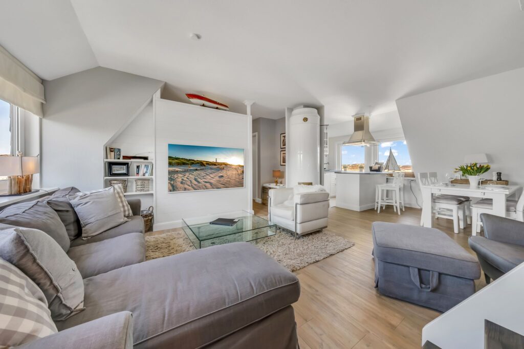 Freuen Sie sich auf erholsame Tage in unserem stilvollen Ferienapartment „Inselloft“ in strandnaher Lage in Hörnum Nord. Auf großzügigen 65 m², verteilt über zwei Ebenen im 1. Obergeschoss, erwartet Sie ein modernes Wohnkonzept mit viel Licht und einer offenen, einladenden Atmosphäre.