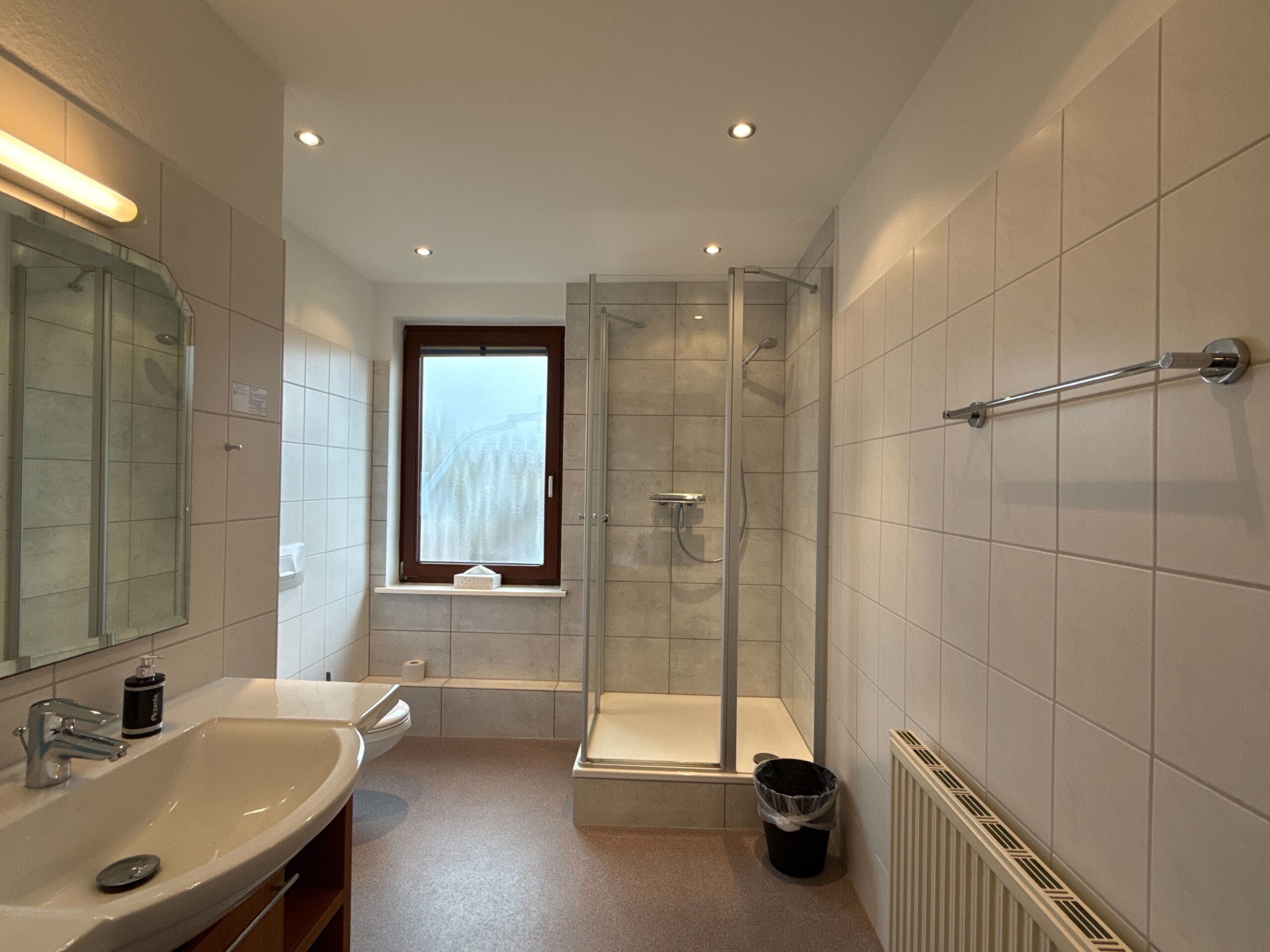 Auf dem Gemeinschaftsflur der Pension steht unseren Gästen außerdem ein Gemeinschaftskühlschrank zur Verfügung. Zusätzlich finden Sie dort Geschirr sowie einen Wasserkocher, sodass Sie sich jederzeit unkompliziert Getränke oder kleine Snacks zubereiten können. Dieses Angebot eignet sich besonders für Gäste, die morgens einen Kaffee oder Tee genießen oder zwischendurch etwas kühl lagern möchten.