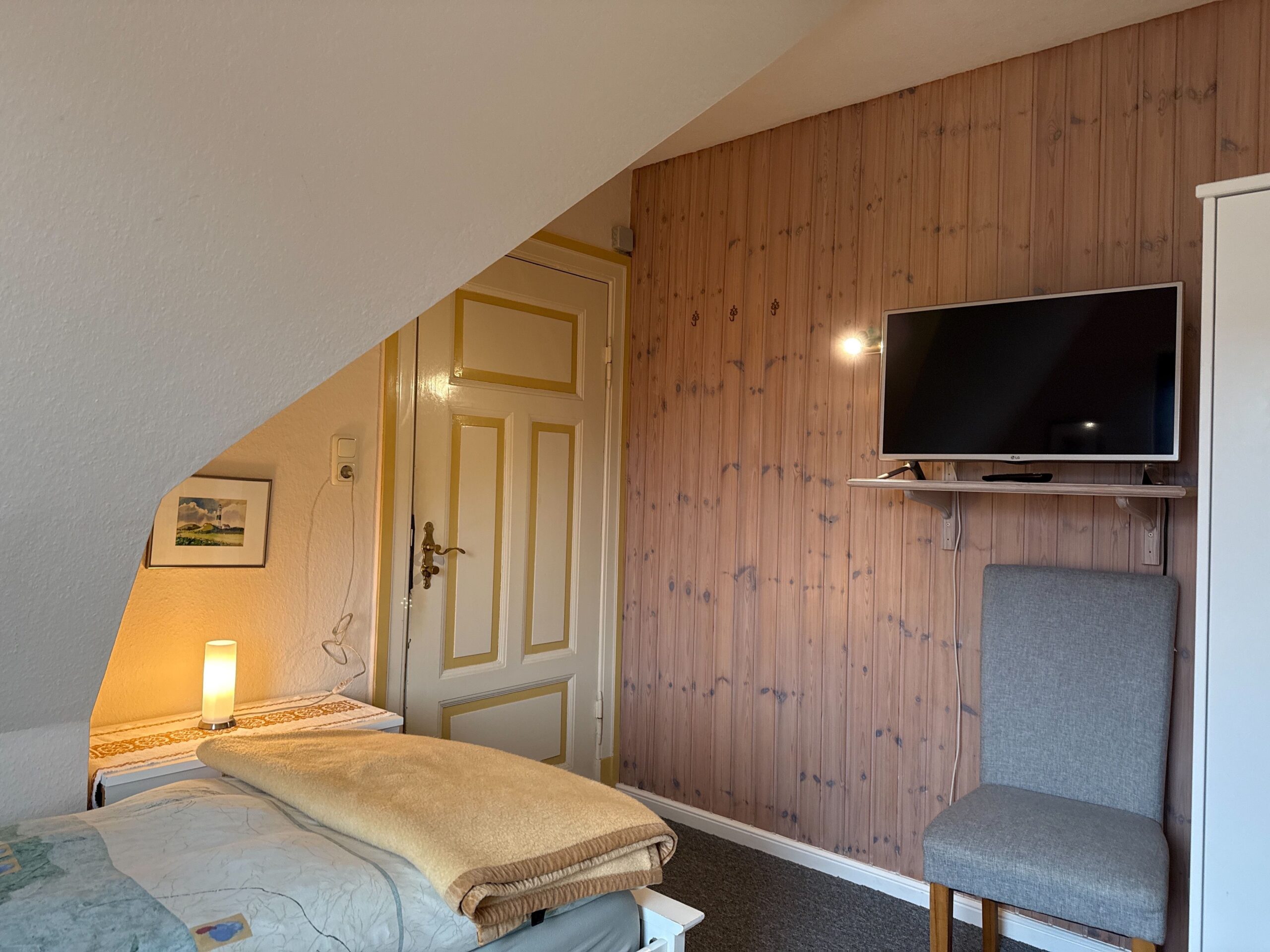Das Zimmer ist freundlich eingerichtet und verfügt über ein Einzelbett, TV sowie WLAN. Das eigene Duschbad mit WC bietet Privatsphäre und Komfort.
