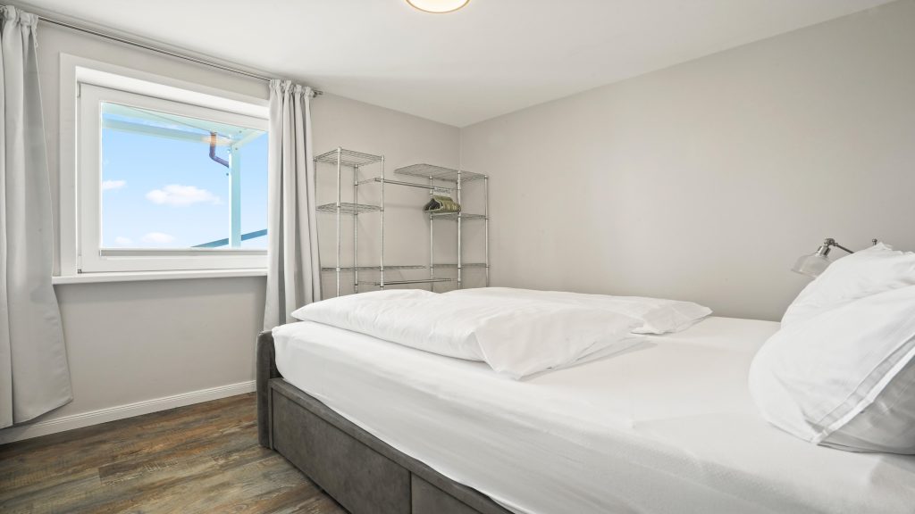 Im separaten Schlafzimmer erwartet Sie ein komfortables Boxspring-Doppelbett, das für erholsame Nächte sorgt. Das moderne Badezimmer verfügt über eine große Dusche und ist mit allen Annehmlichkeiten ausgestattet, die Sie für Ihren Aufenthalt benötigen. Das Warmwasser und die Heizung werden mit regenerierbarer Energie (Geothermie) erwärmt und so schonen Sie in Ihrem Urlaub gleichzeitig die Umwelt. Für Ihr Auto gibt es direkt vor dem Haus einen kostenfreien Parkplatz und Ihre Fahrräder können Sie in der geschützten Garage unterstellen.