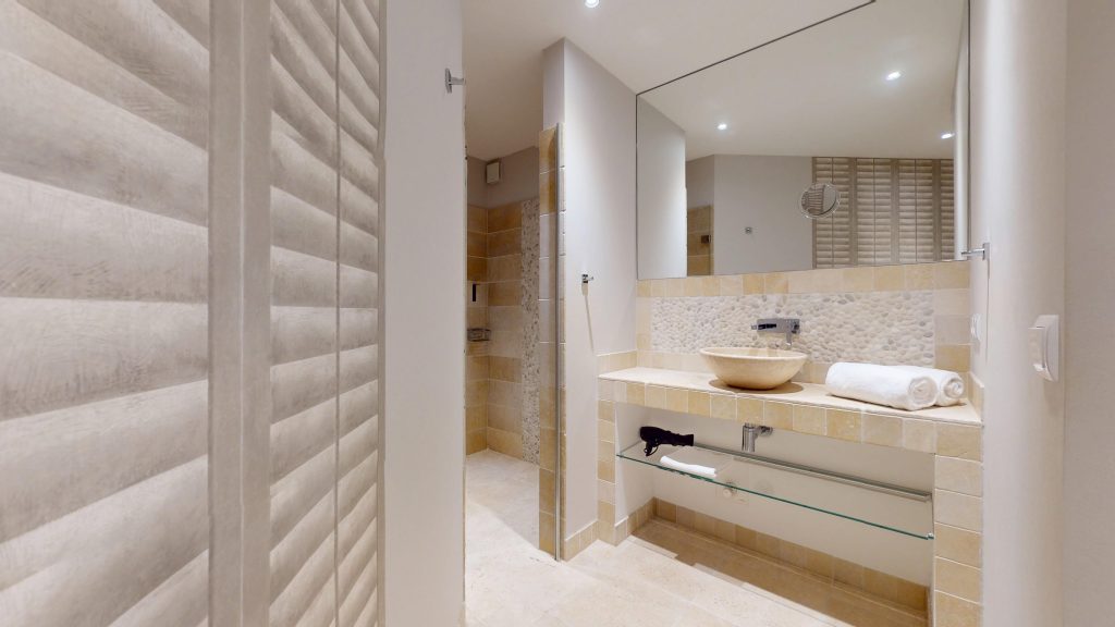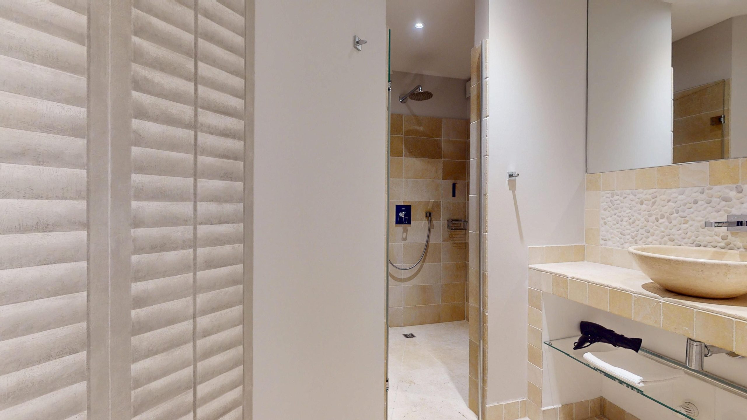 Ebenfalls auf dieser Ebene liegt das moderne Badezimmer mit großzügiger Regendusche.