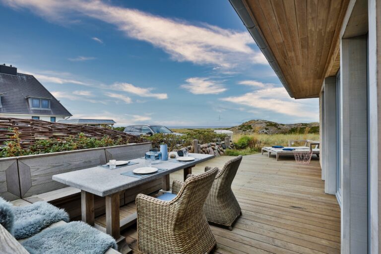 Ihnen den Zutritt auf die schöne Westterrasse. In der Saison stehen hochwertige Gartenmöbel zur Verfügung und laden zum Verweilen ein.