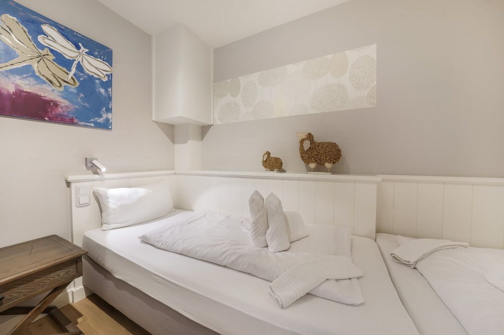 Das zweite Schlafzimmer besteht aus zwei Einzelbetten und ebenfalls über einen