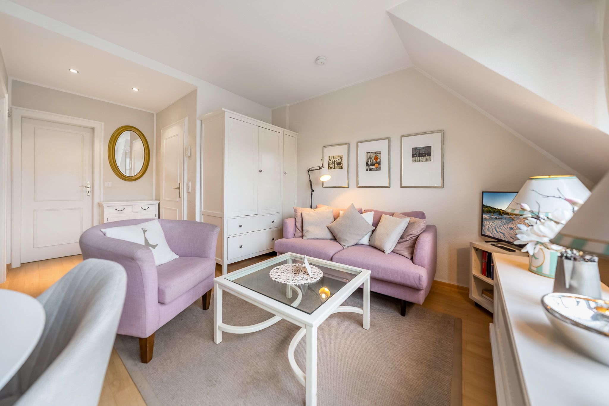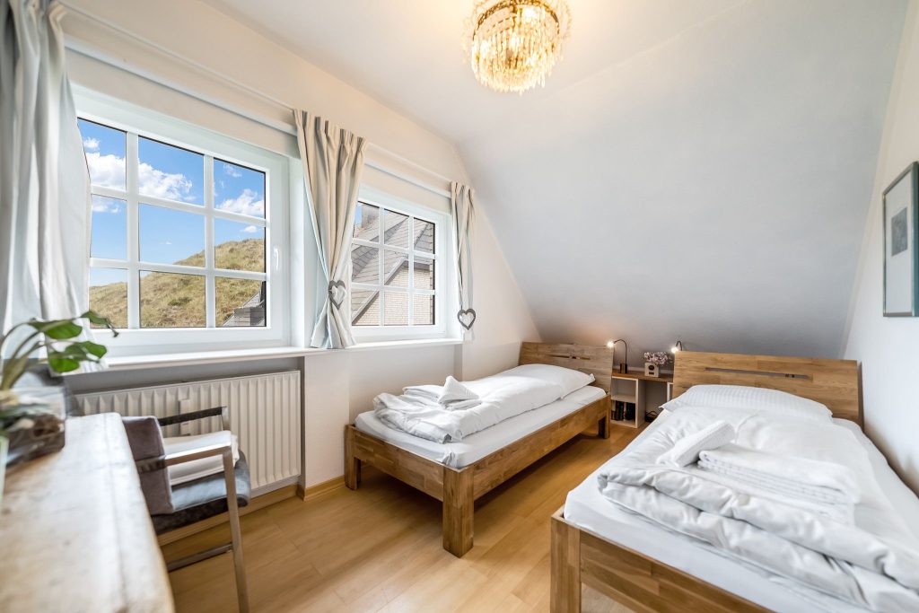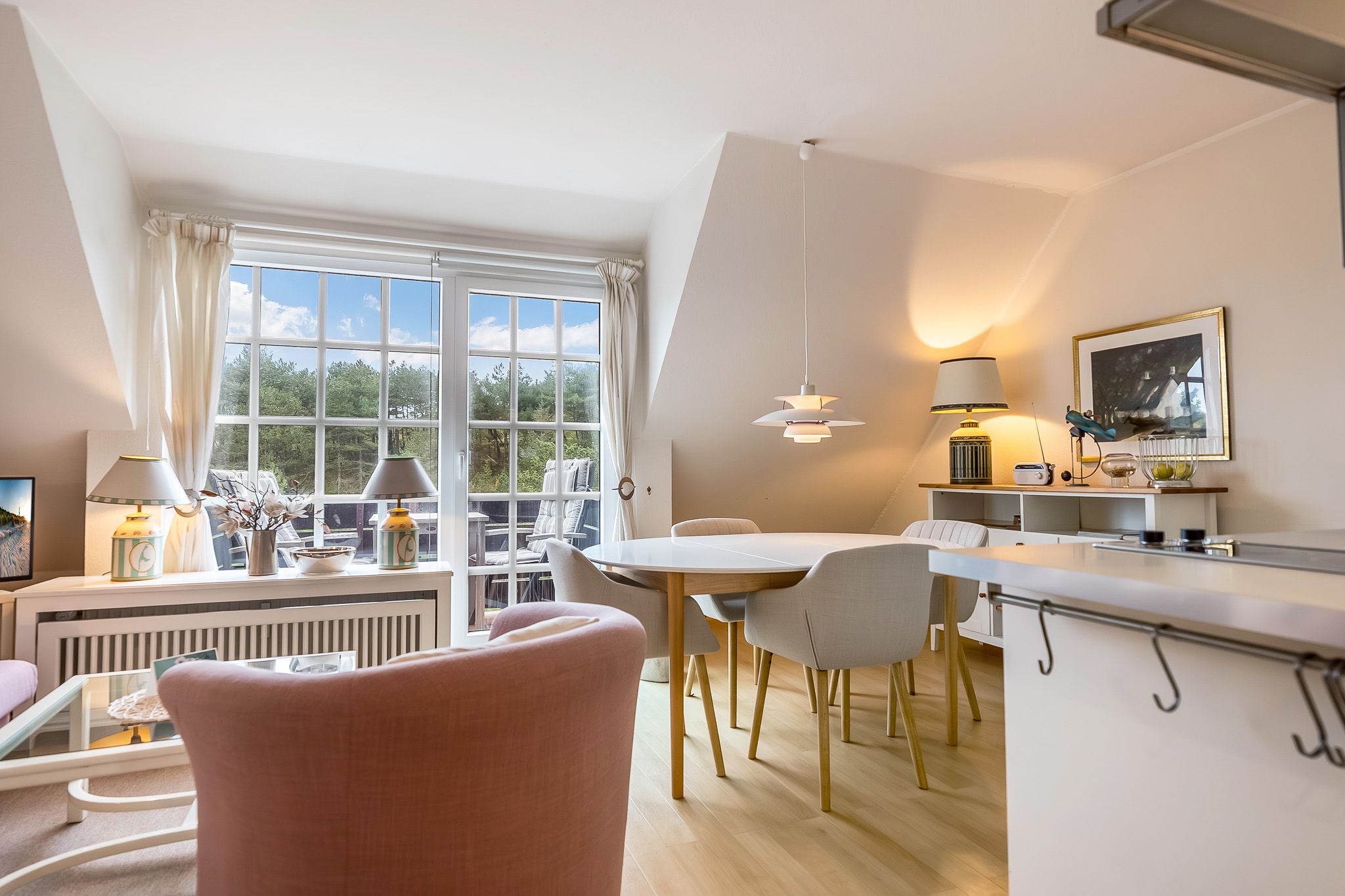 Das helle Apartment im 1....Weiterlesen Stock überzeugt mit einem freundlichen Wohnambiente: Ein separates Schlafzimmer und ein offener Wohn- und Essbereich schaffen Raum zum Ankommen und Wohlfühlen. Bodentiefe Fenster im Wohnbereich lassen viel Tageslicht herein und geben den Blick auf die grüne Umgebung. Auf dem privaten Balkon genießen Sie morgens Ihren Kaffee – begleitet vom Rauschen der Nordsee mit Blick ins Grüne Tal.